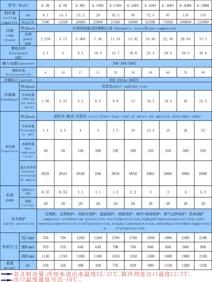 8.水冷及風冷式規格齊全(功率:3HP-300HP,制冷量從600W至34800W)專門設有適合各行業機械設備配套之機型,可按客戶要求特別制造。