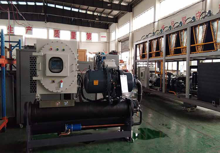 3.風冷螺桿式乙二醇冷水機是通過風扇以空氣作為冷凝方式的低溫冷水機:風冷螺桿式乙二醇冷水機從30HP~200HP。