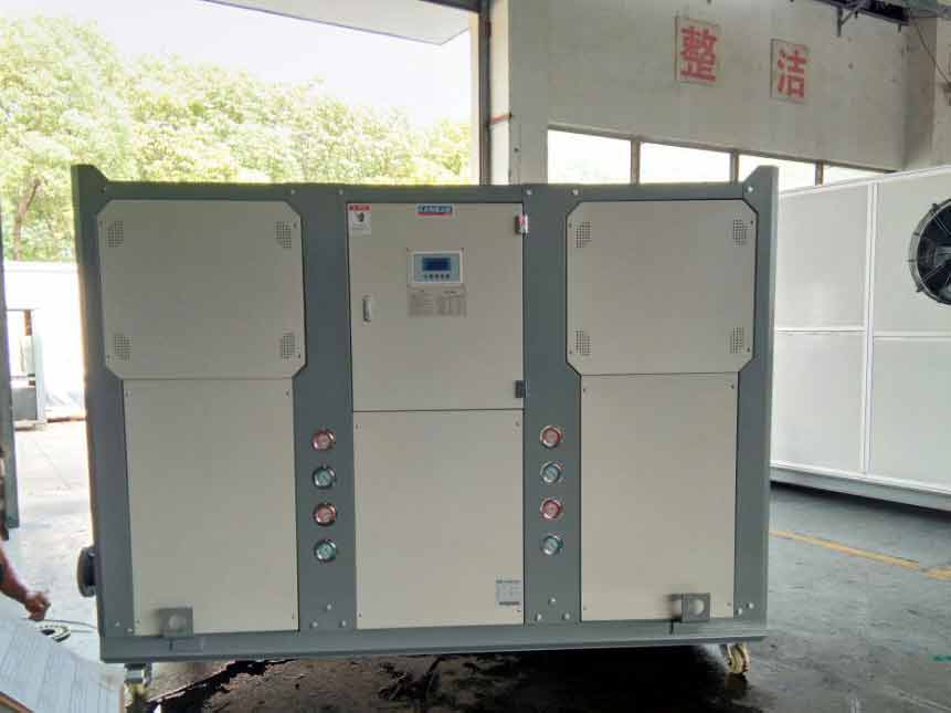 1、風(fēng)冷式吹膜機冷卻降溫用冷水機,通過風(fēng)扇以空氣為冷凝方式的控溫設(shè)備,有箱式和螺桿式;
