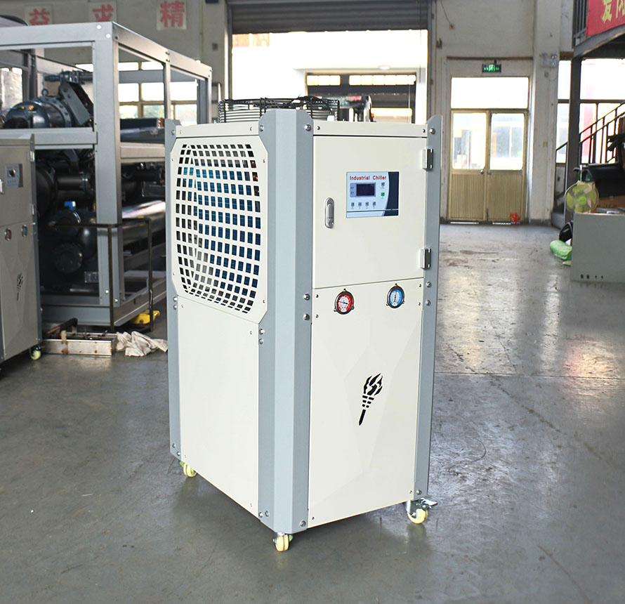 2、風冷式發泡成型冷卻恒溫降溫用冷水機,通過風扇以空氣為冷凝方式的控溫設備,有箱式和螺桿式;