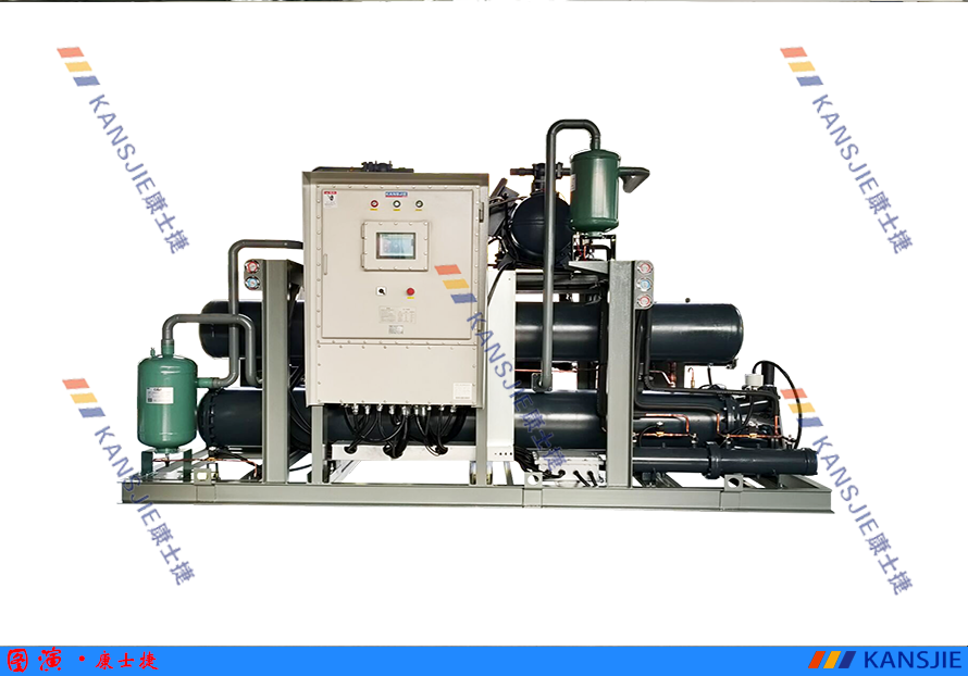 1、防爆型制藥業控溫用復疊式冷凍機組,用于有防爆要求的環境;
